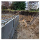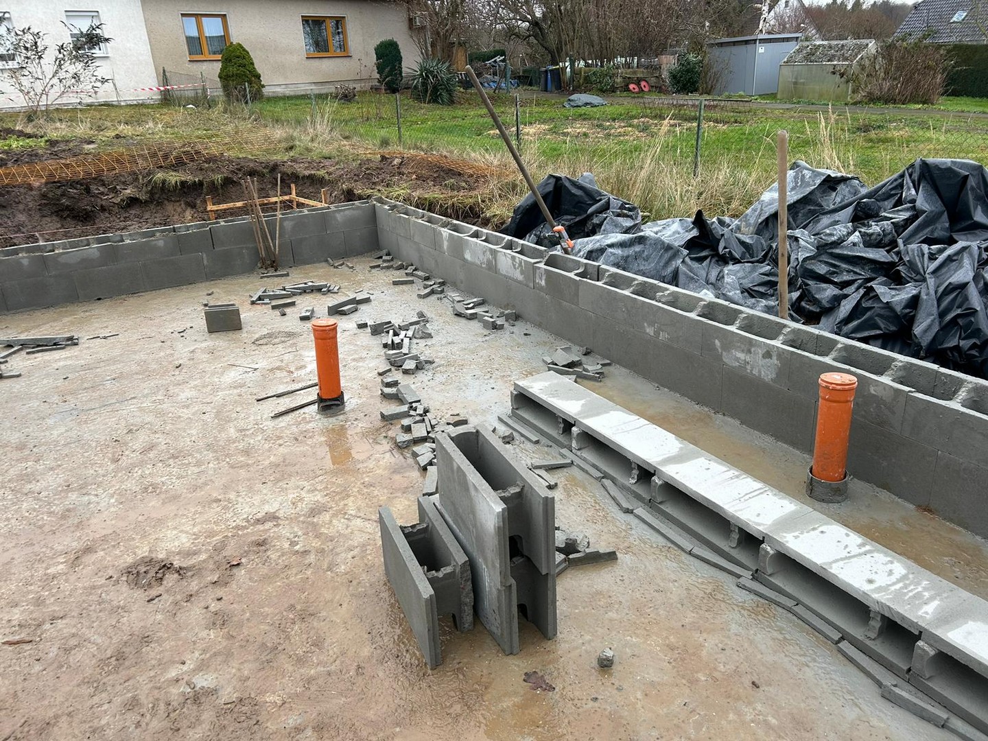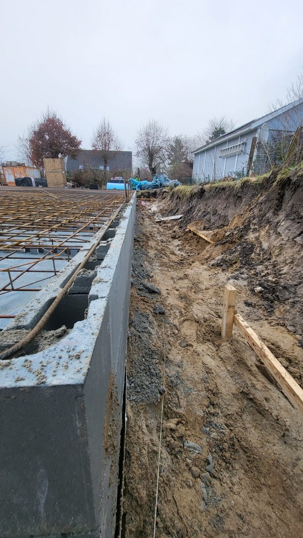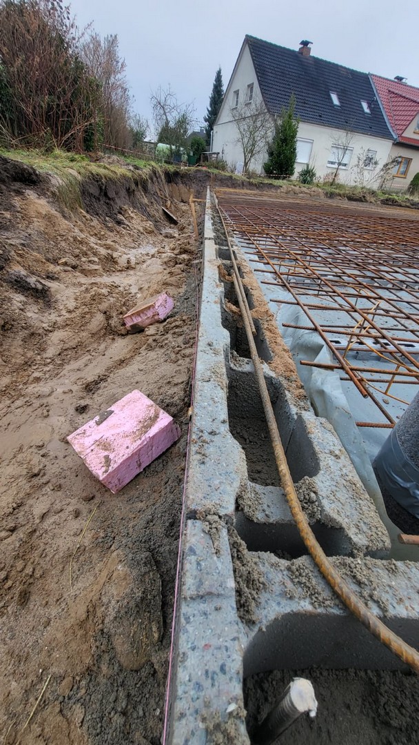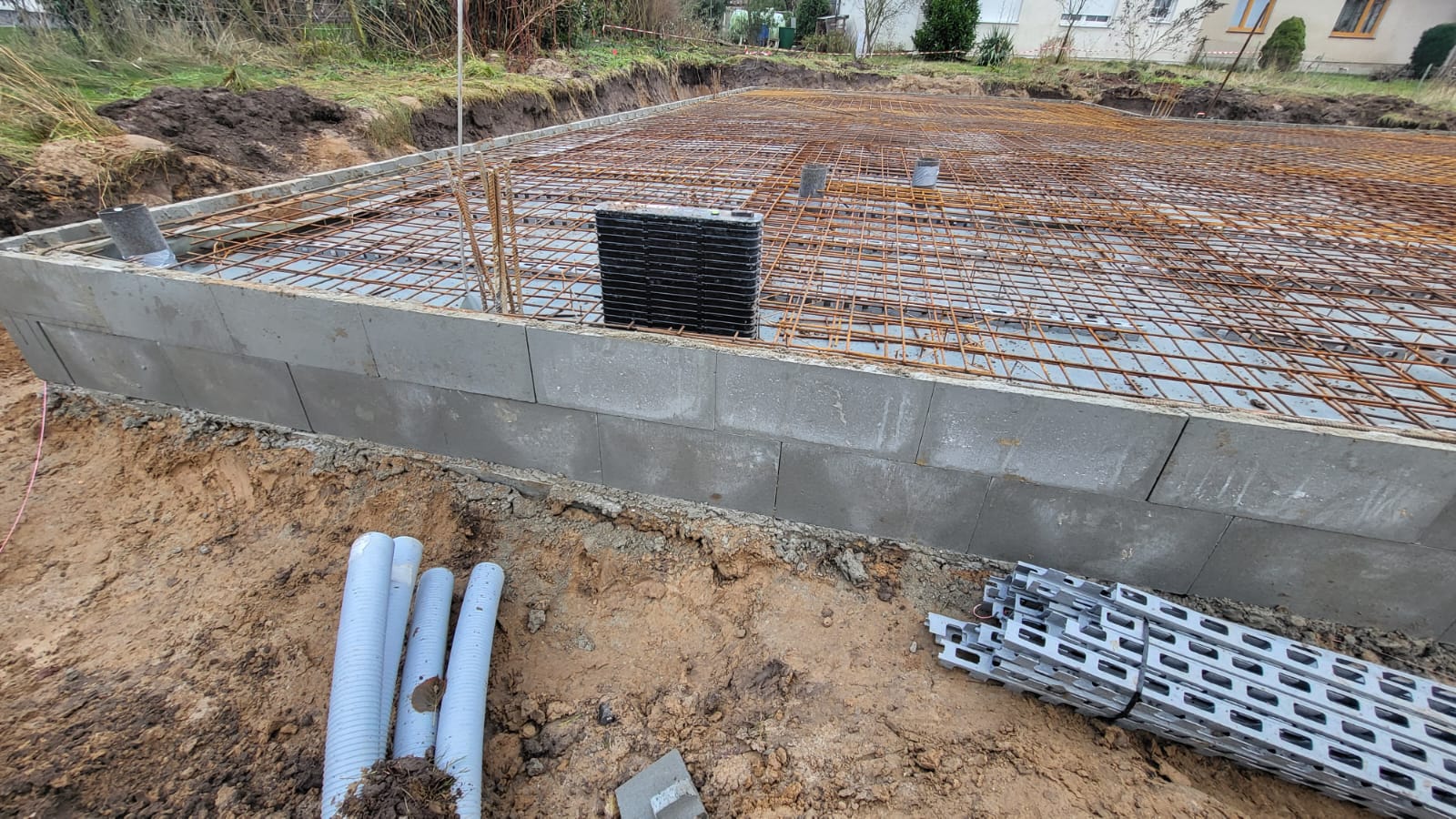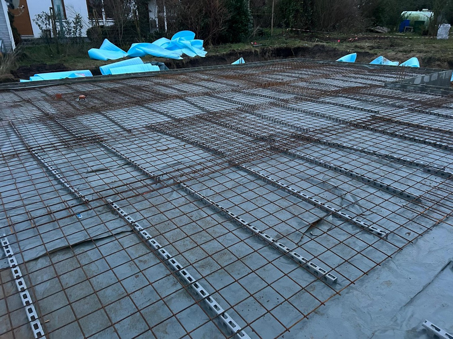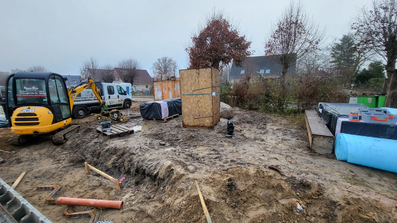 Grundleitungsanschlüsse und die Hauseinführung auf die entsprechende Höhe verlängert. Innenraum mit verdichtetem Kies verfüllt und mit einer neuen Platte überdeckt.
