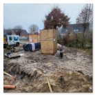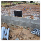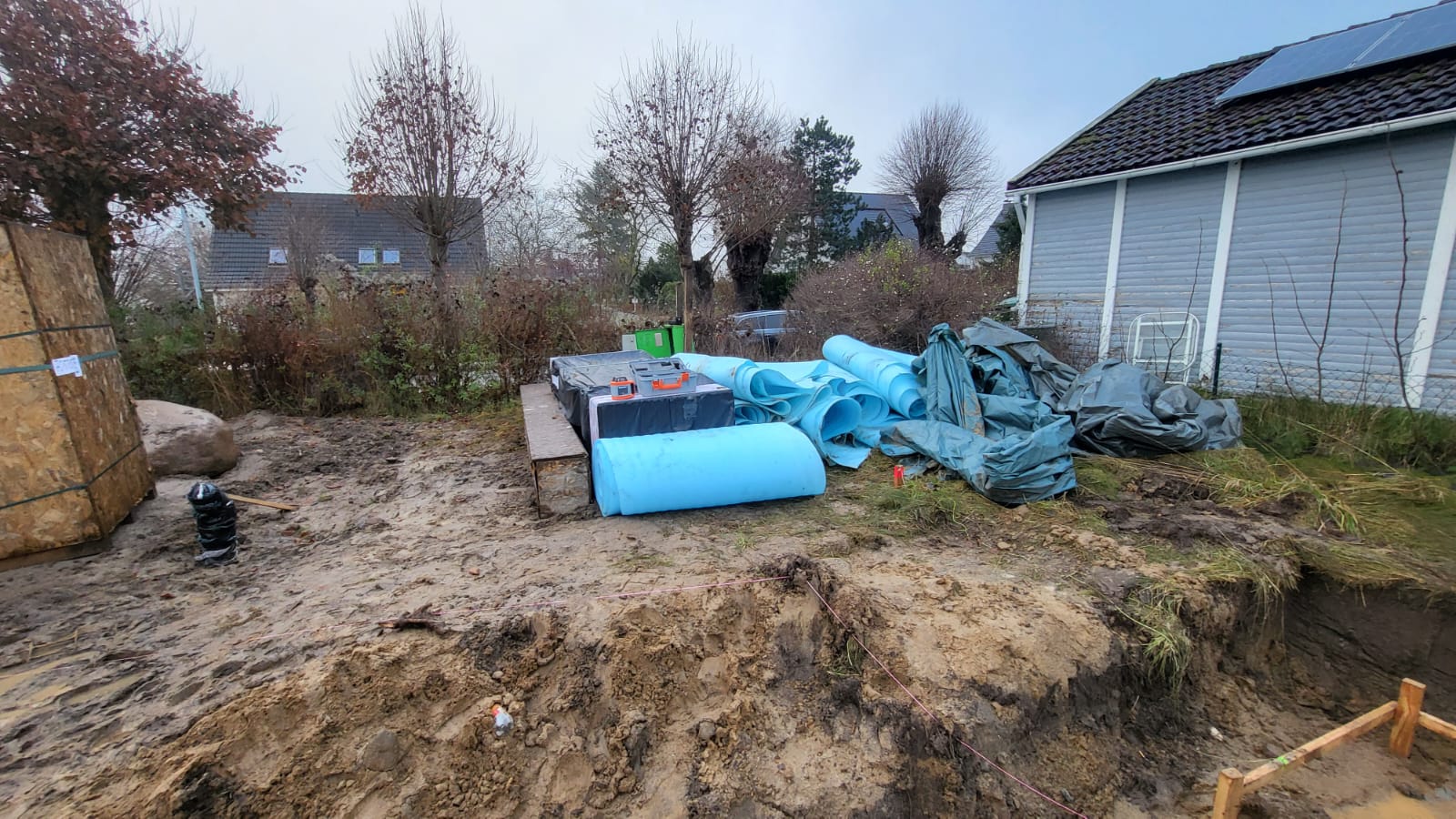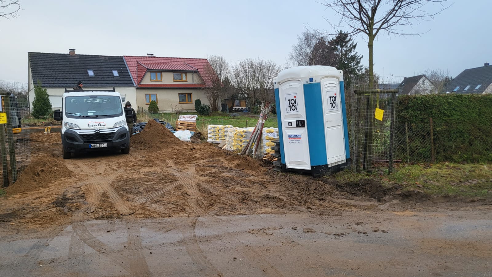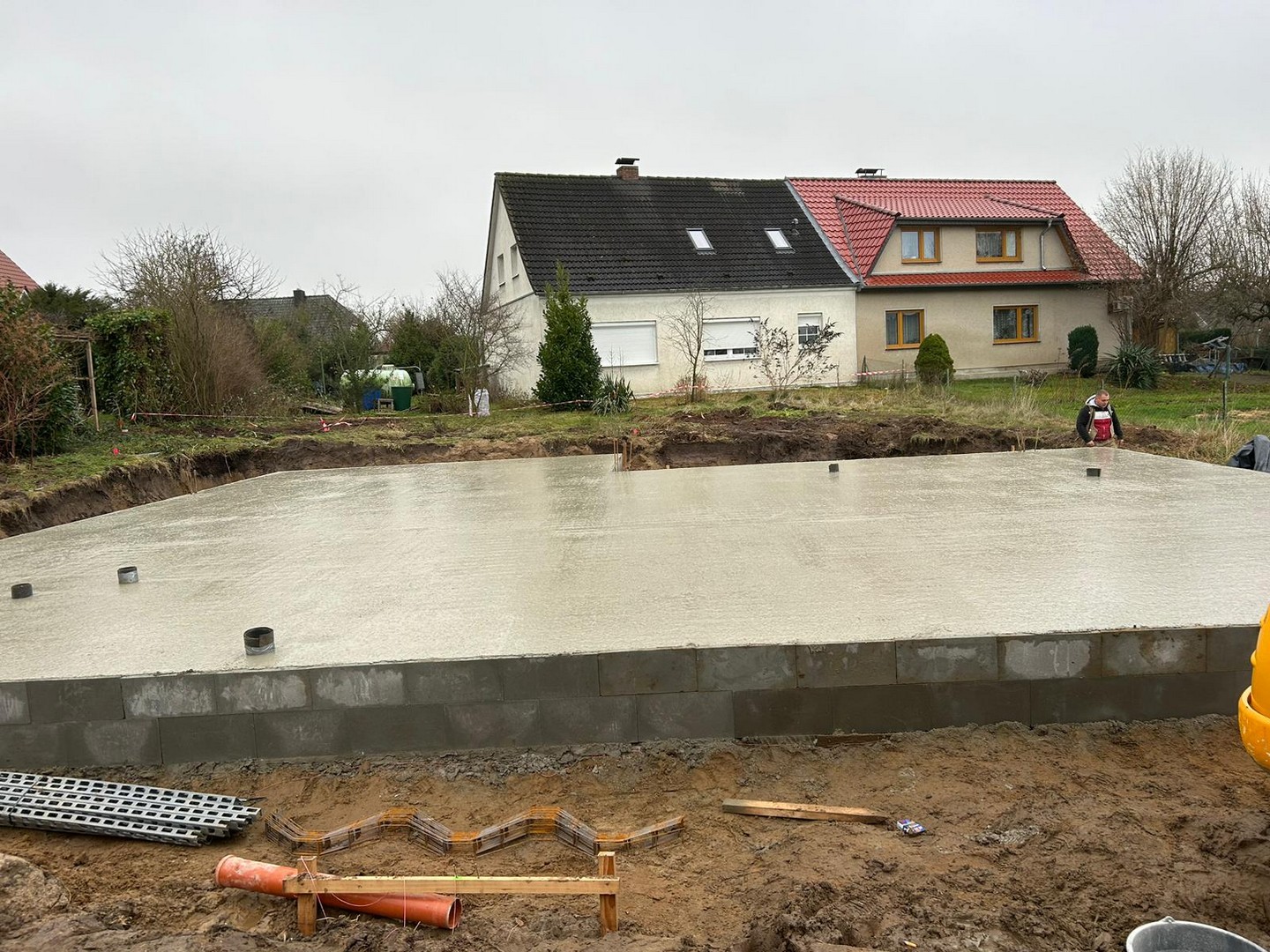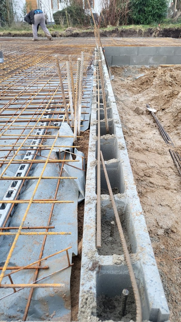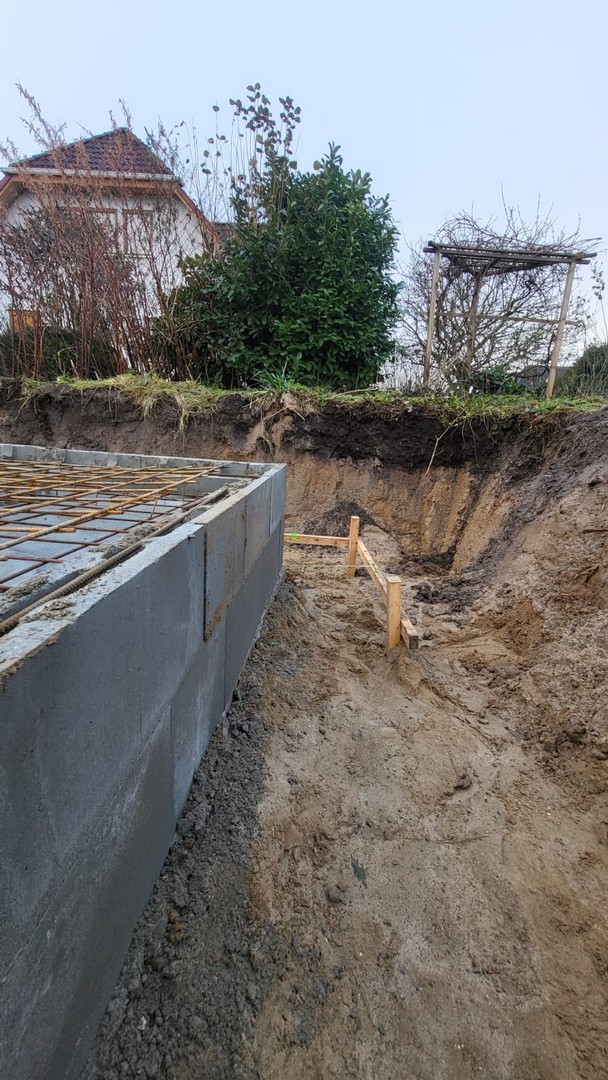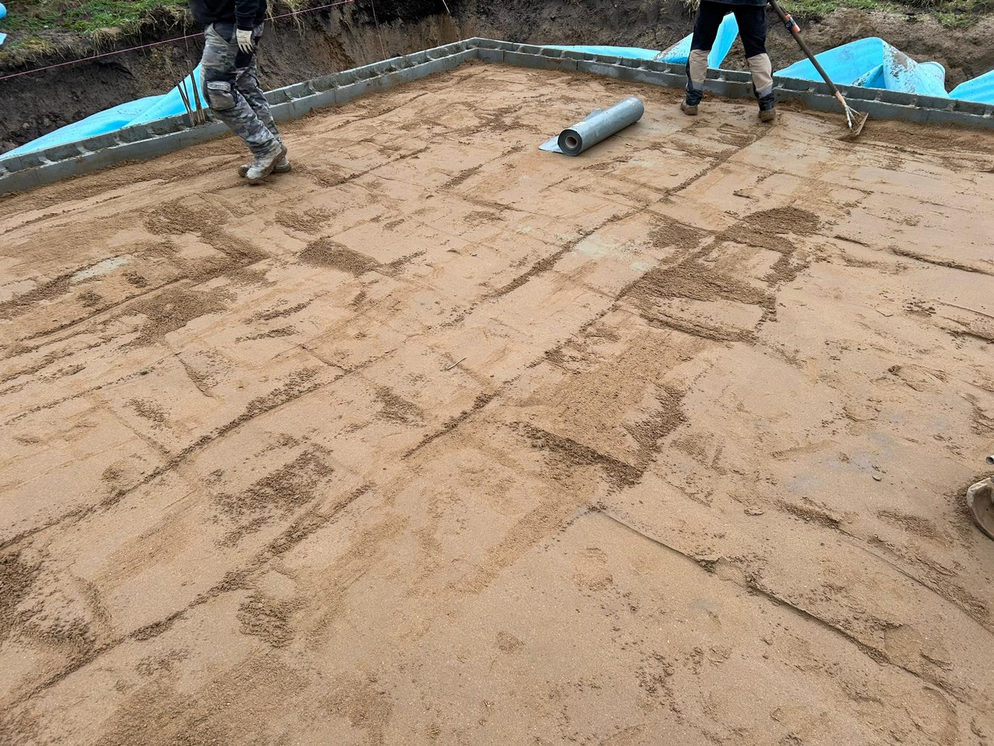 Grundleitungsanschlüsse und die Hauseinführung auf die entsprechende Höhe verlängert. Innenraum mit verdichtetem Kies verfüllt und mit einer neuen Platte überdeckt.