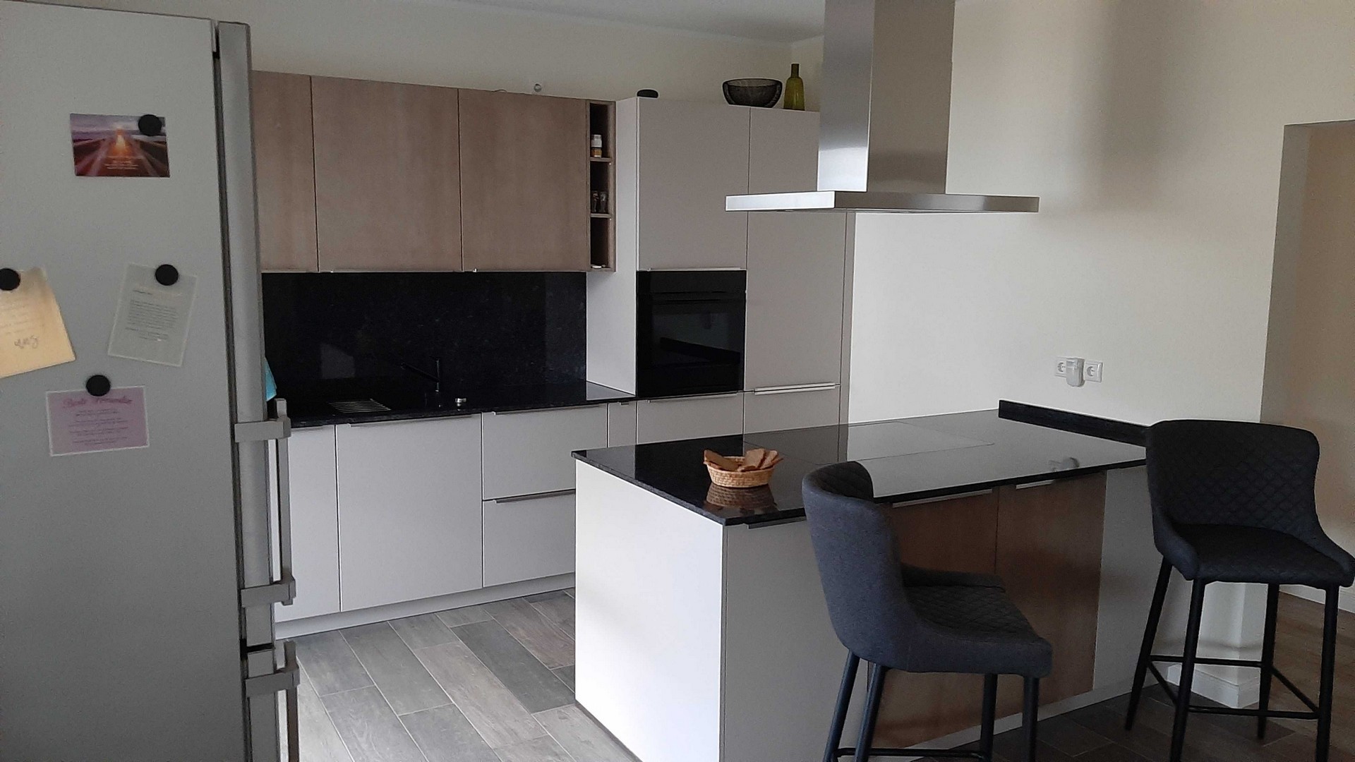 Behelfsarbeitsplatte gegen Granitplatte und Wandverkleidung ausgetauscht