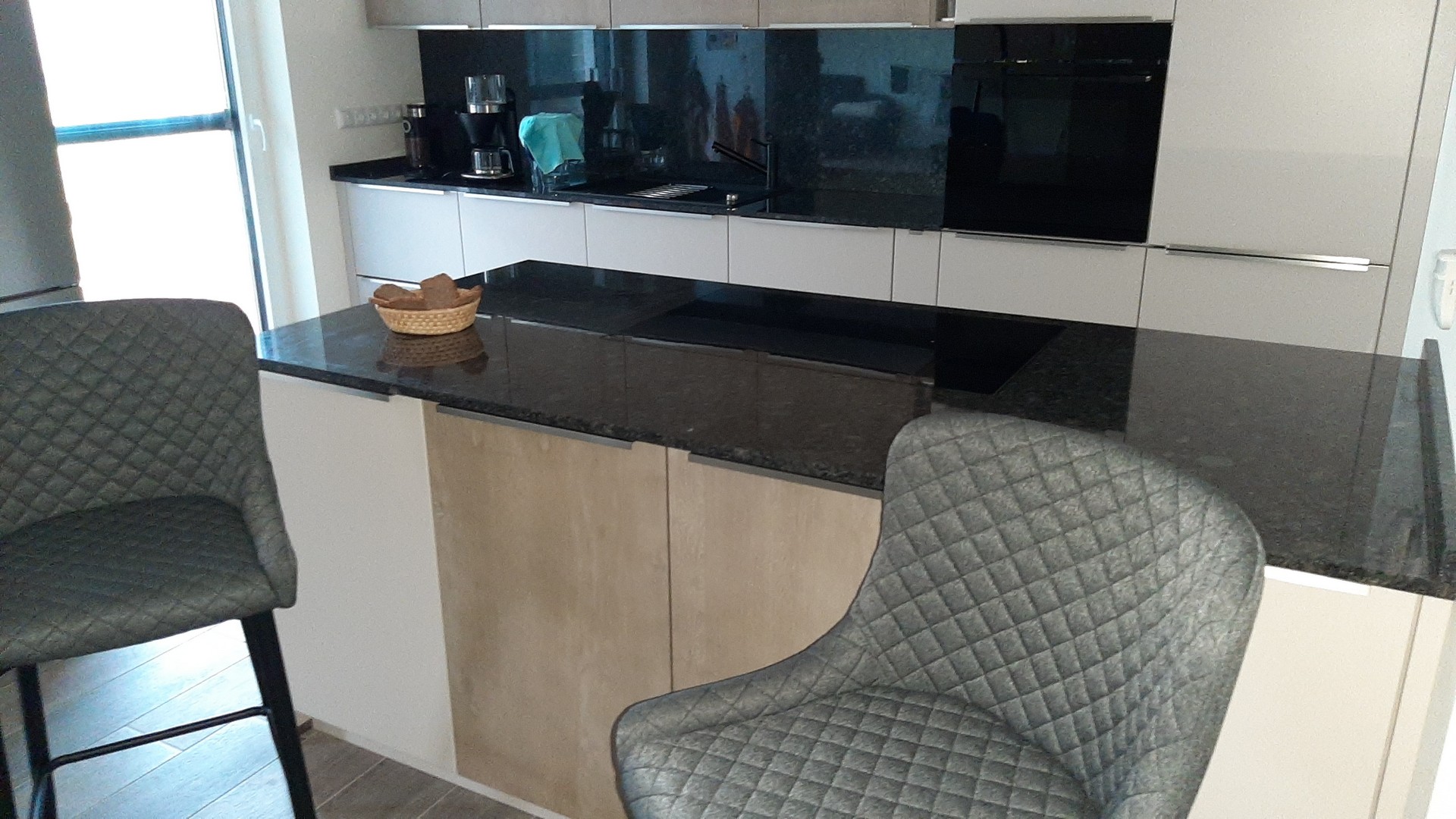 Behelfsarbeitsplatte gegen Granitplatte und Wandverkleidung ausgetauscht